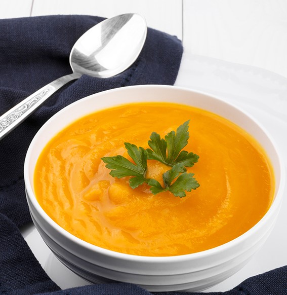 A megfőtt zöldségeket egy botmixerrel pürésítsd teljesen selymesre. Ha szükséges, adj hozzá egy kevés kókuszkrémet vagy tejszínt a még krémesebb állagért.