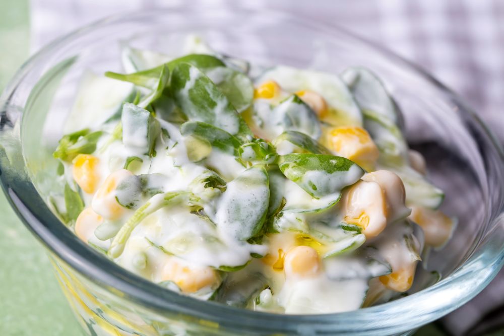 Medvehagymás, spenótos kukoricasaláta